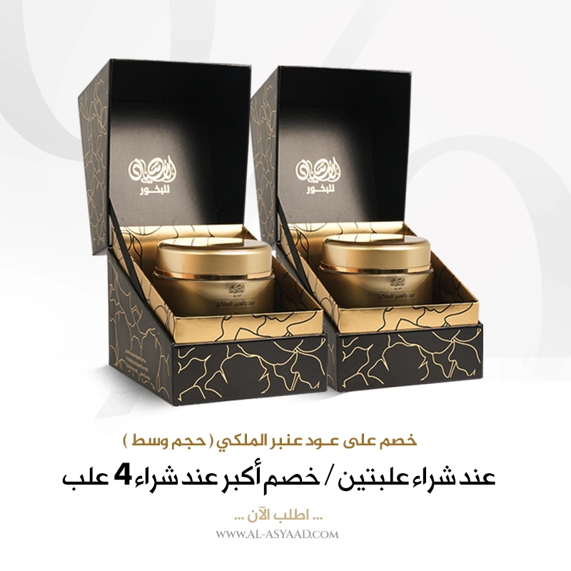 خصم على علبتين وأربع علب عود العنبر الملكي